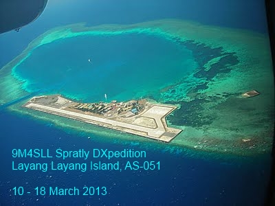 John, 9M6XRO; Steve, 9M6DXX; James, 9V1YC; Ben, DJ0YI / N6MUF; Don, G3BJ; Pista HA5AO; George, HA5UK; and Tony, KM0O will be operating as 9M4SLL from Pulau Layang Layang, Spratly Islands, from 10th - 18th March 2013. Activity will be on all bands from 160m to 10m, CW, SSB and RTTY, using five stations with linear amplifiers to vertical antennas on the edge of the ocean.