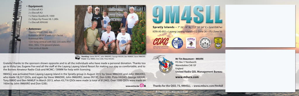 9M4SLL Spratly DXpedition, 2013