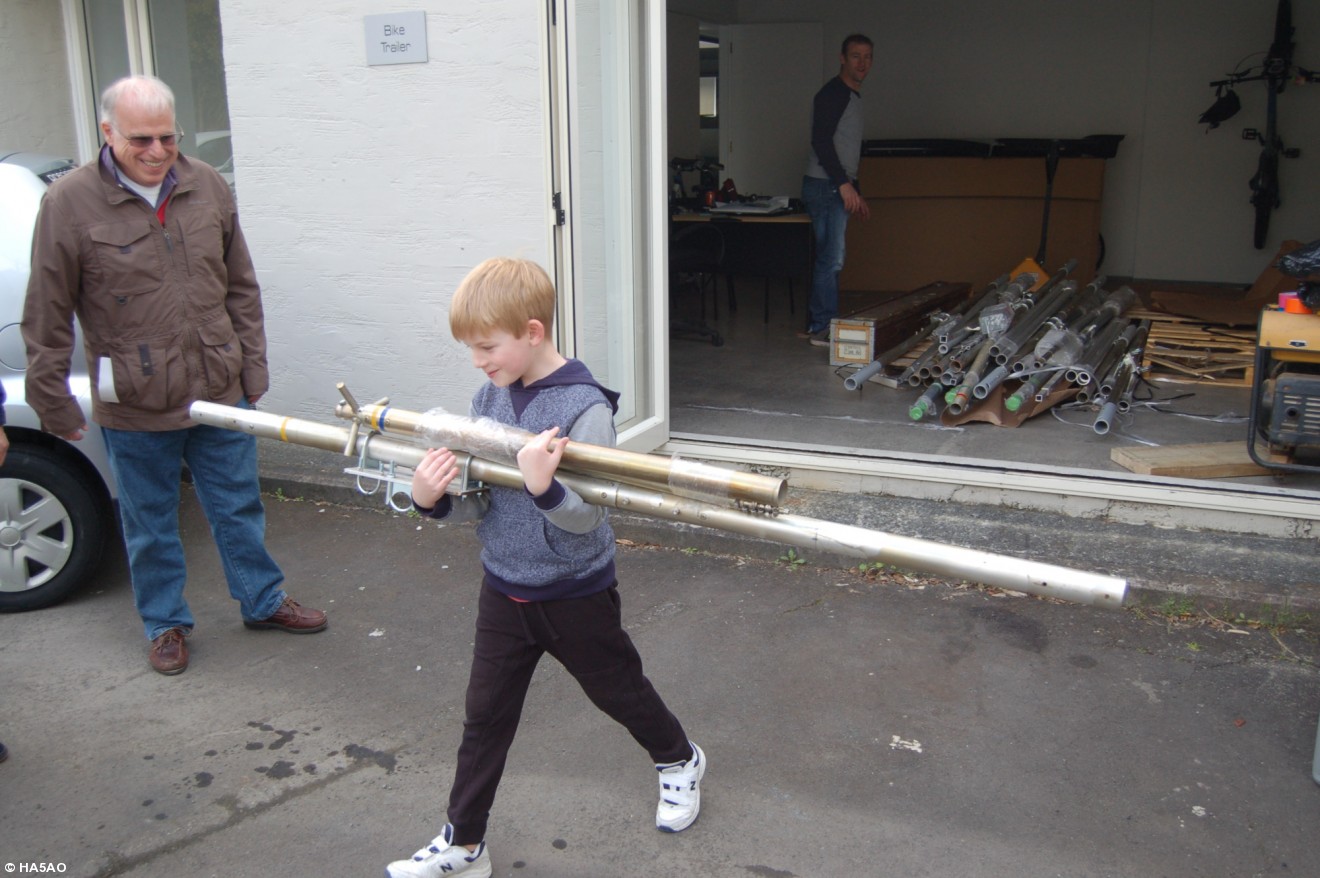 Gene observes Grandson Jaden help load antennas